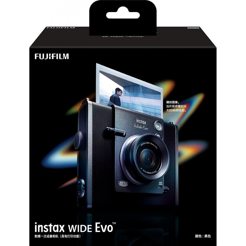 FUJIFILM Instax WIDE Evo Le WIDE Evo imprime des clichés de haute qualité directement depuis l&-39 appareil photo. Il permet aussi d&-39 imprimer les photos provenant de la galerie de photos de son smartphone sous iOS ou Android via l&-39 application gratuite WIDE Evo. Cette application dispose également d&-39 options pour photographier à distance ou améliorer ses images. De plus, pour stimuler la créativité et encourager le partage d&-39 images, l&-39 application WIDE Evo donne accès à un tout nouveau flux de contenu « Discover Feed », qui permet aux utilisateurs de découvrir les clichés instax qui ont été téléchargés sur Discover Feed par d&-39 autres utilisateurs WIDE Evo sous forme galerie de photos, et de visualiser les effets d&-39 objectif et de film ainsi que l&-39 intensité donnée aux effets d&-39 objectif. Les réglages de style d&-39 habillage de film utilisés pour les photos sont également indiqués. En outre, les utilisateurs peuvent, par connexion Bluetooth, mettre dans leurs favoris les effets affichés afin de les réutiliser ensuite sur leur propre appareil photo via l&-39 application. Option Grand-angle Le WIDE Evo est doté du plus grand angle jamais proposé sur un appareil photo instantané instax, à 16mm. Vous pouvez choisir de prendre des images au format standard, ou opter pour le mode Grand-angle qui vous donne le maximum de chance de capturer toute la scène dans la photo. 10 options d&-39 effet d&-39 objectifx10 options d&-39 effet de film = 100 combinaisons d&-39 expression créative, avec en plus le contrôle d&-39 intensité de l&-39 effet d&-39 objectif. Tout comme l&-39 appareil photo instantané instax mini Evo, le WIDE Evo dispose de 10 options d&-39 effet d&-39 objectif et 10 options d&-39 effet de film, ce qui offre aux photographes 100 combinaisons différentes pour s&-39 exprimer. De plus, le WIDE Evo est doté d&-39 une fonction de contrôle du degré d&-39 intensité qui permet au photographe de déterminer l&-39 importance de l&-39 effet d&-39 objectif qu&-39 il souhaite donner à son image. 6 styles d&-39 habillage de film pour améliorer l&-39 apparence de l&-39 image En plus des effets d&-39 objectif et de film, le WIDE Evo propose 6 styles d&-39 habillage de film pour personnaliser davantage ses images avec comme options: un aspect normal, un aspect cinématique avec des barres noires tout du long en bas et en haut de l&-39 image, un aspect classique style pellicule, un format classique avec le tampon date/heure, un aspect planche contact, ou encore un effet vintage de type procédé au collodion. Selfies, stockage et bien plus encore Le WIDE Evo est doté d&-39 un écran LCD 3.5 pouces dans son dos, ce qui permet de contrôler les effets ajoutés et les modifications. Il est, par ailleurs, alimenté par une batterie interne Lithium-ion qui donne la possibilité d&-39 imprimer jusqu&-39 à 100 images par charge, en fonction des conditions d&-39 utilisation. Un logement pour carte micro SD (carte micro SD vendue séparément) assure d&-39 avoir toujours assez d&-39 espace pour stocker des images supplémentaires à exploiter ultérieurement (environ 45 images peuvent être stockées sur la mémoire interne de l&-39 appareil photo), tandis qu&-39 un miroir Selfie est aussi là pour aider les utilisateurs à réussir des selfies à tout moment. Produit neuf dans son emballage d'origine bénéficiant de la garantie originale du fabricant. EAN 4547410543377.